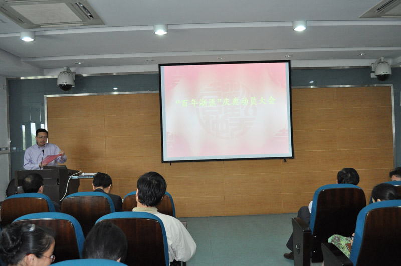 2012年,医学部将迎来百年华诞,届时将举行一系列盛大的庆祝活动。庆典工作时间紧,任务重,为了确保各项筹备工作有条不紊的开展,学部于5月6日下午召开了动员大会对百年浙医庆典筹备工作进行全面部署。学部领导班子,机关全体工作人员,药学院、基础系、公卫系和各附属医院分管庆典工作的领导和工作人员以及师生代表等130余人参加了动员大会。会议由学部党委副书记、庆典办公室执行主任吴弘萍主持。