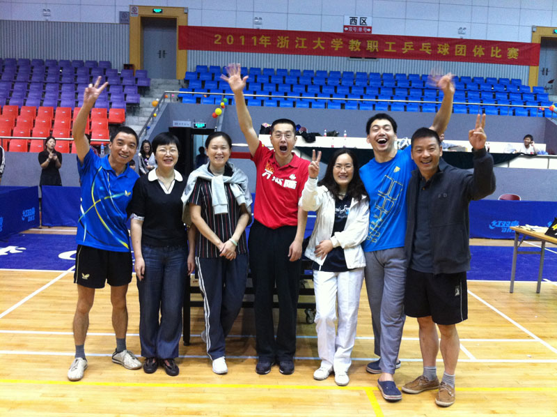 1014,2011年浙江大学教职工乒乓球团体比赛在浙大玉泉校区体育馆精彩开赛,共有32支代表队亮相本次大赛。医学部首次以统一的院级队参赛,派出一支包括领队王亦夫,教练胡济安,队员胡济安、孙亚逊、李俊、郭春雷、高丽娟、李松英、谢珏在内共八人的精英队伍角逐比赛,凭借出色的球技与得当的战略,勇夺冠军。