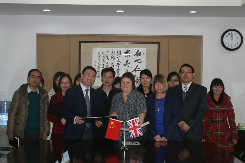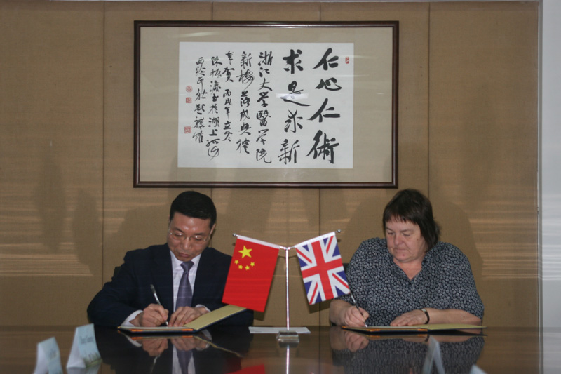 Helen Houston教授和Marian Ludgate教授分别介绍了卡迪夫大学医学院在医学教育和研究方面的基本概况。黄河副主任、娄小娥书记和朱善宽主任也分别向来宾介绍了医学部、药学院和公共卫生系的情况。最后,双方正式签署了两校医学院之间的合作备忘录。卡迪夫大学医学院将于今年7月接收我校6名医学生在卡迪夫教学医院进行为期8周的临床见习交流。此外,该校医学院的内分泌科和我校附属邵逸夫医院内分泌科已在英国合作申请联合项目和基金。会后,代表团还参观访问了附属第一医院和附属邵逸夫医院。