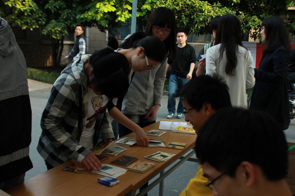 趁着午饭时间,“爱心衣连衣,情暖你我他”于中午11点半开工啦!1008班的“志愿者”们各显本领,或大声吆喝,或散发宣传单,或给不认识的同学详细介绍活动情况,或招呼认识的同学速速“抱”来他们的爱心……或许是很多同学中午时间比较匆忙的原因,中午的活动收获并不十分显著,但有很多热心的同学表示对活动感兴趣,晚上会送衣服过来。