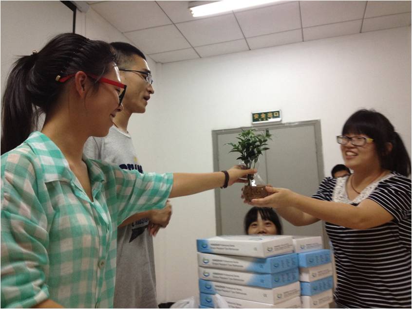 在大家进行了自我介绍之后,首先是原1204班班长张学优同学宣布了上一学期1204班以寝室为单位的目标完成情况。其中,蓝五6011寝室和5047寝室分别达成了去三个不同的省份和评的十佳寝室的目标,分别得到一盆竹柏作为奖励。同时,在新学期开始之际,1206的每个寝室也都定下了新的目标。