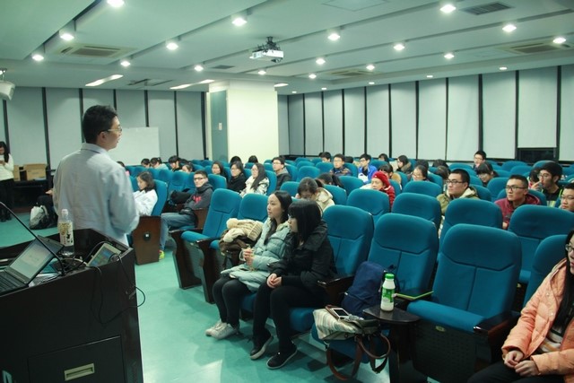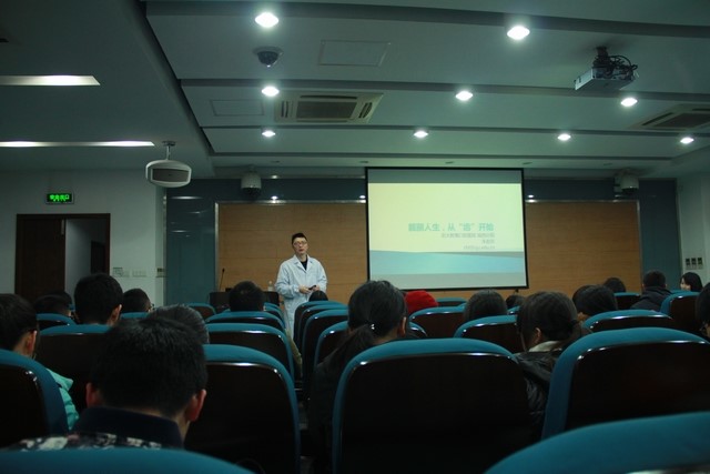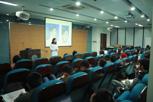 朱医师的主讲题目是:靓丽人生,从“齿”开始。朱医师由如何展现最美的笑容引出演讲主题,对牙齿的整齐、洁白、美观进行了医学上的分析,讲到健康的牙齿能为我们带来很多好处。朱医师的演讲还结合了时下的流行元素,语言风趣幽默,又十分简单易懂,同学们都听得十分认真。
