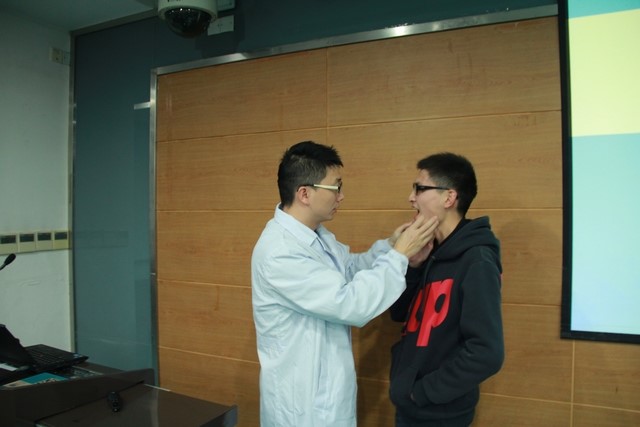 在演讲结束后,许多同学主动留下来向医师提问。两位医师为有问题的同学解答疑惑,并现场为他们进行了口腔检查,推荐了相关治疗的医院和医生,同学们在讲座现场就能得到免费且专业的建议。