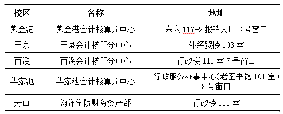 各校区会计核算中心地址如下: