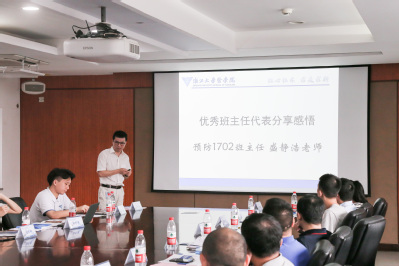 赵丽娜、陈超、田宇倩分别就医学院的培养方案、思政工作和班主任工作进行了介绍,明确了班主任在学业教育、思想引领、班级建设等方面的工作内容。随后,校级优秀班主任盛静浩老师作为分享了班主任工作的经验,以“积极组织参加学生班团活动”的班级管理方式为新生班主任提供班级组建的经验。预防医学1902班王炳翰同学作为学生代表发言,对班主任表达感激之情,并提出合理的建议。